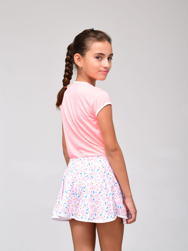 Blusa en tono rosado con manga corta abajo del hombro y cuello en “V”. Textil suave y con atributos funcionales como secado rápido y transpirabilidad, apta para cualquier actividad física.