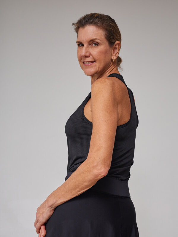 El negro siempre destaca la elegancia. Esta blusa tipo esqueleto con su escote redondo y silueta regular fit adicionan comodidad a tus movimientos. Confeccionada con textil de alta transpirabilidad y secado rápido.