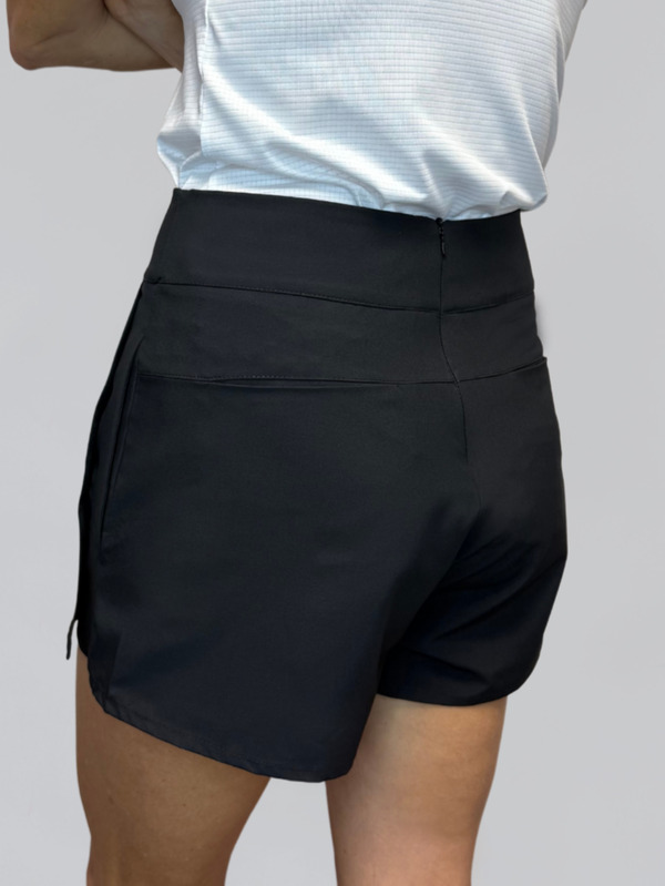Prenda versátil y moderna que combina el estilo de una falda con la comodidad de un short en color negro. Todo lo que necesitas: dos bolsillos laterales y dos bolsillos traseros invisibles para los tees o tarjeta de juego. Diseñada en textil antifluido que combina estilo y funcionalidad en el campo.