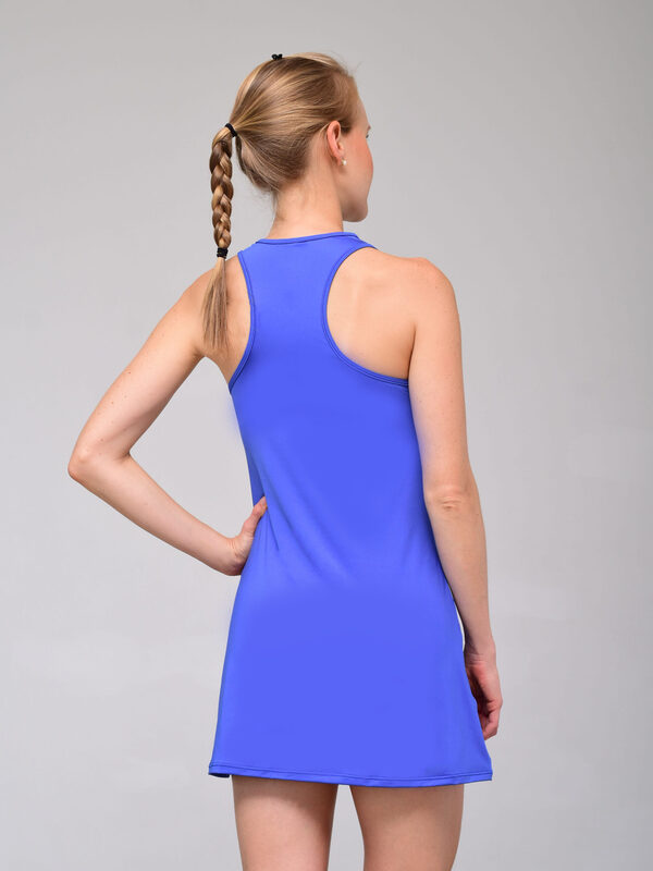 Vestido deportivo en azul marino con corte regular fit apto para todas las siluetas. Su corte holgado con cuello redondo y espalda descubierta tipo esqueleto lo convierten en una opción muy cómoda para cualquier tipo de actividad. El textil con el cual es confeccionado tanto el vestido como su short de pretina alta, ancha y doble ofrecen propiedades de secado rápido y es muy suave al tacto.