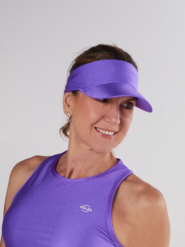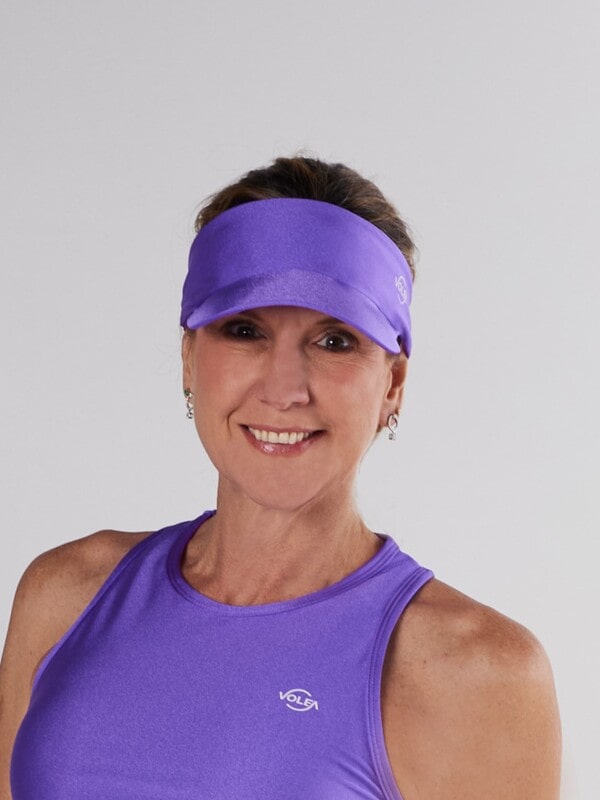 Visera tipo balaca morada levemente metalizada, confeccionada para ofrecer la mayor comodidad y suavidad. La banda se adapta al contorno de la cabeza y absorbe completamente el sudor.